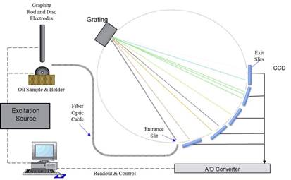 评估设备的磨损状况是状态监测的主要内容。用油设备在其整个使用寿命期间内都会产生磨损颗粒,磨损的性质和速度由于其初始磨损原因,最终报废诱因等种种因素的不同而相同。光谱可被用于检测磨损及其严重程度。光谱分析是可量化检测油样中元素的技术。光谱分析利用每个元素具有独特原子结构的特点。当受到能量激发时,元素都会发出特定波长的光。由于没有两个元素能发射出相同波长的光,所以可以据此区分这些元素。发射光的强度与样品中存在的元素量成正比,通过测定发射光的强度可以确定该元素的浓度。通常,这些技术的名字来源于其激发元素的方法。